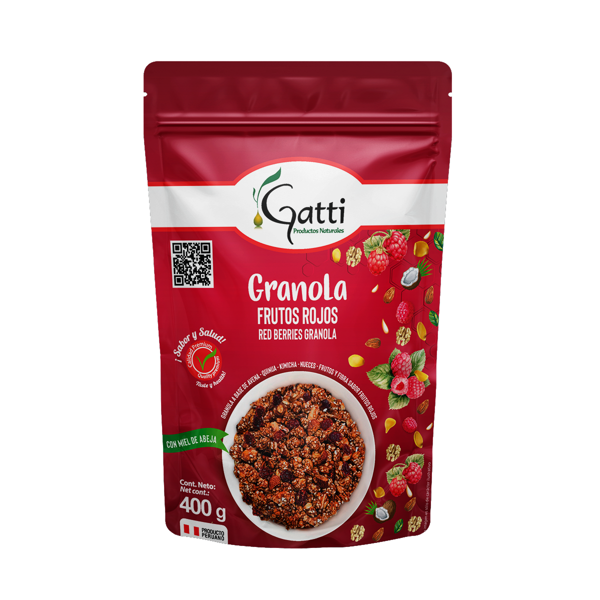 Granola a base de avena – quinua – kiwicha – nueces – frutos y fibra sabor frutos rojos